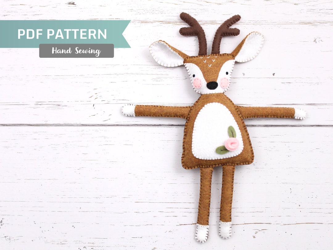 Felt Deer Pattern Felt Sewing Deer Pdf Tutorial Diy Deer Etsy Felt Animal Pattern Stuffed Animal Patterns Felt Animal Patterns